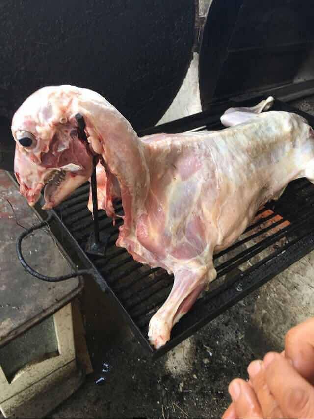 张北石家大院,现杀现烤,肉质鲜嫩而且没有膻味,虽然是个大男人但是也还是第一次看杀羊,虽然有点血腥,不过和杀鱼一样。本来就是用来吃的嘛。还把羊在烤炉里摆好造型。真的是很有意思。