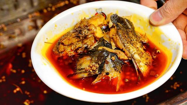 哥们儿吃鱼头频频点头,称:“好吃好吃!”相比蛙,个人觉得鱼头一般,不怎么好吃。可能是因为从小不爱吃鱼吧。