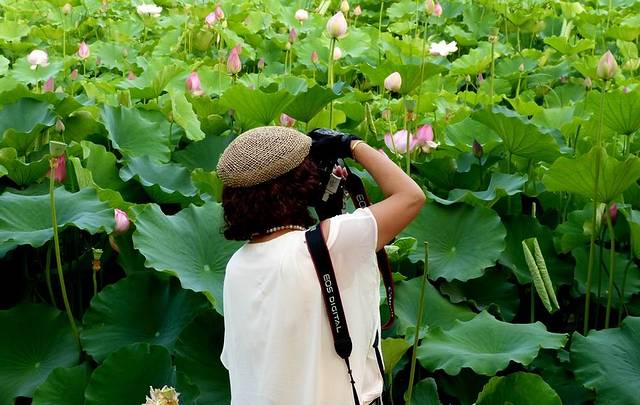 夏天来大连英歌石植物园的游客,基本上是来观赏荷花的。照片摄于大连英歌石植物园。