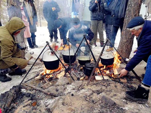包车司机是带我们到各个景点拍照,中午山上给我们煮鱼汤或者牛肉汤喝,在这种冰天雪地的日子,能喝上暖暖的新鲜的汤还是觉得很满足的!