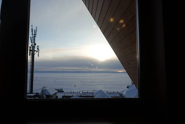 去完博物馆之后往上走一段就能找到坐缆车的地方,坐上山顶可以看日落,不过我们那时候是中午过去的,所以没什么人,很空旷,俯瞰贝加尔湖,因为角度问题,拍的真的没实景好看
