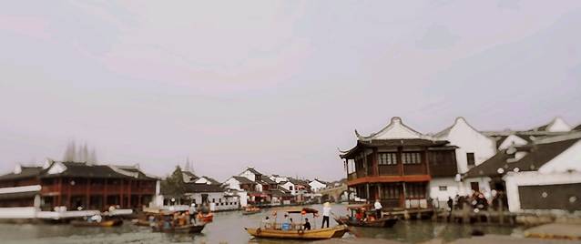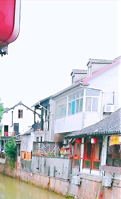 踩着青石板,缓慢地穿过一条条街道,随处可见街道两旁贩卖的小商,街道的交叉口,是拱桥或者木板桥,河流穿过这个小镇,河两旁是一排排青砖瓦房,船夫舞动着船桨河上,载着游客走河道穿过整个市井,时不时会有民间歌谣从船中穿出来,河边是买手工艺品的老奶奶或者老爷爷,家养的猫狗懒洋洋地躺在河边,静静地晒着太阳。这是我藏在回忆里的古镇,而位于魔都的新场古镇和朱家角也确实如此。