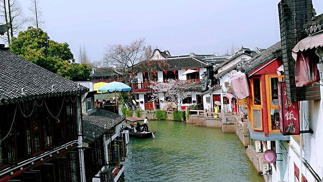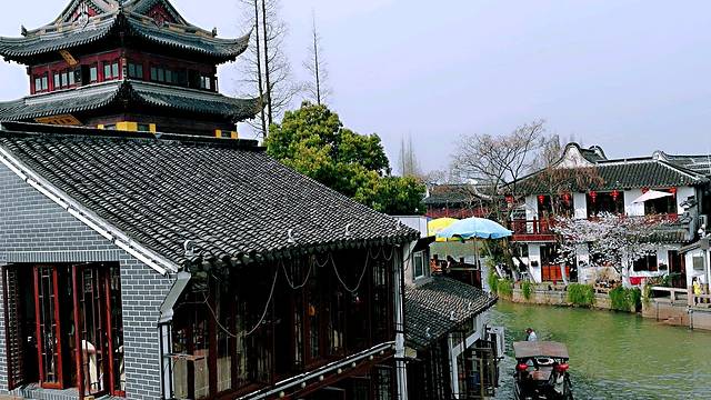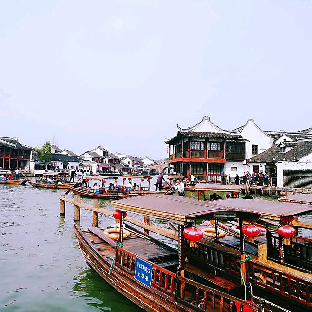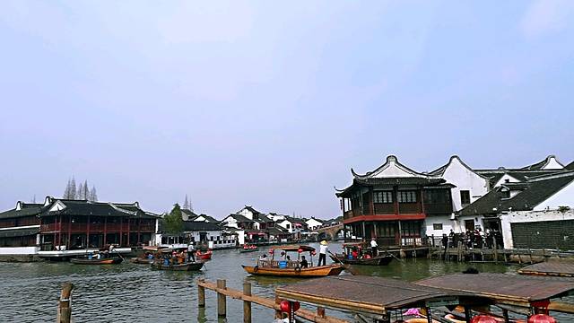 朱家角水路纵横,河流从一座座桥下流过,船夫划着船桨再者游客穿过这个古镇,河两旁是一样的白墙黑瓦的老式居民住宿,慢慢悠悠地穿过一条条小巷,晒着太阳,这个感觉跟我在苏州走过的山塘街是一样的。中国的古镇总是有那种让节奏慢下来的独特魅力,让人忍不住静静地享受着这份美好的时光。