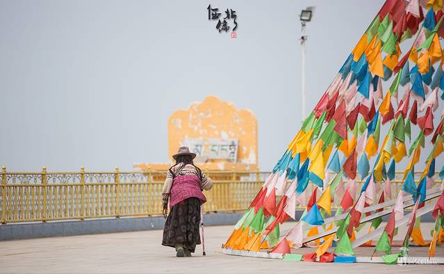 在青海,最多的少数民族就是回族和藏族。回族信仰伊斯兰教,而藏族大部分信仰佛教,因此在青海的寺庙里,总能见到虔诚的教徒,路上有经幡和转经筒的地方也会遇见他们。