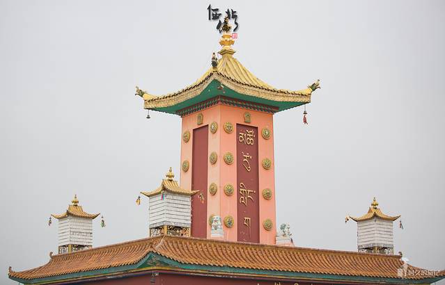寺前广场的八宝如意塔是寺里的标志性建筑之一,据说是为纪念佛祖释迦牟尼一生之中的八大功德而建造的。其造型大同小异。塔身白灰抹面,底座青砖砌成,腰部装饰有经文,每个塔身南面还有一个佛龛,里面藏有梵文。绕着八宝如意塔转一圈,便能祈福带来好运。