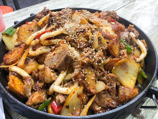 炕羊排:以前听过烤羊肉,涮羊肉,但是就没听过炕羊肉。我平常不太爱吃羊肉,因为不喜欢膻味,但是吃了炕羊排后发现了羊肉的新吃法,让我瞬间爱上这道美食,特别是里面的土豆和宽粉,非常入味。