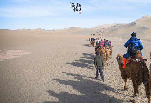 在骑骆驼的时候,会有人帮忙拍照,如果想要留念照,需要另外付费。骑骆驼的路程是从门口进区一直绕到月牙泉,大约需要40分钟-1小时。