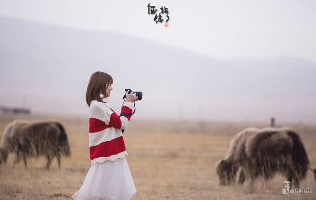 当时的情况是,乐乐正在拍牦牛,我在远处拿着长焦正好看到。我就说,乐乐继续拍,当她拿起相机的那一刻,我就拍下了这一张,虽然天气不太好,但我对这张照片还是非常喜欢的。