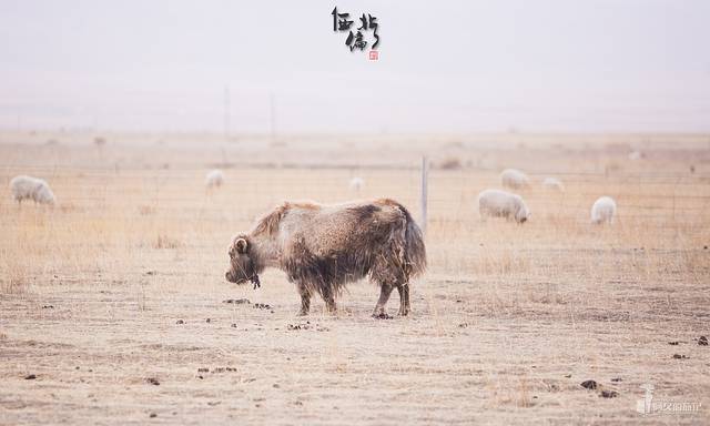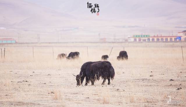 快到黑马河的地方,有一片草原(当然,我们去的时候还都是黄草),还有一些放养在这里的牦牛。其实就是一条从大马路通往青海湖边的小路。没错,就是这样的野景点,但是拍起照来却效果非常好!不信,请看下面这张图。