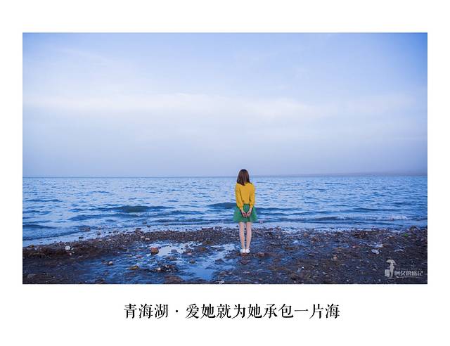 曾经网上有一个很流行的段子是,为她承包一片鱼塘。而在淡季来到青海湖边的好处,真的是人少到可以承包一片湖。因为天气不好的原因,远处的天空像是被蒙上一层,我们并没有走正门买票进到传统的那块“青海湖”的大石头那里,而是在路边随便找了一个路口,有点另辟蹊径的味道。
