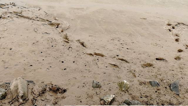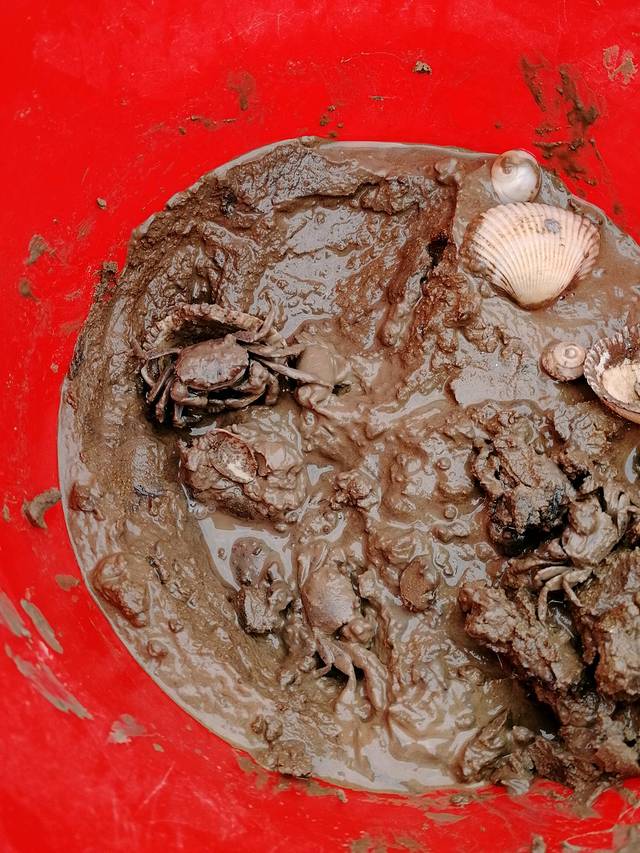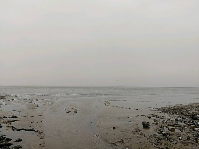吃完早饭出发,顺着黄河路一直向东,然后到海边后往北,定位是红光大道与滨海大道交口,都是大片泥滩,孩子玩得很高兴,好多小螃蟹,最好准备一把中号铁铲,太小的不得挖