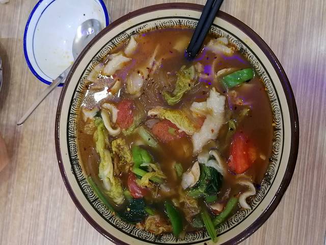 到了酒店安顿好下楼找吃的,因为是回族,能选择的不多,只有火锅烧烤,有些累了,在楼下兰州拉面简单吃点,三个大人一个七岁男孩,要了一份兰州炒饭,一份炒拉面,一份烩刀削,量很大,但是炒饭还行,面有点奇怪的味道,我们吃饭时店里就我们几个