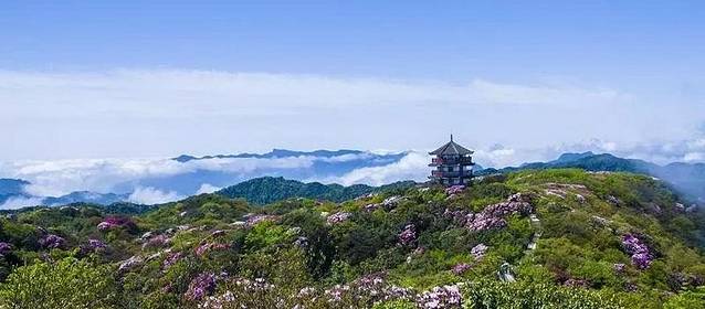 细节虽美,大场景也丝毫不差。到达九莲宝顶后,才能体会到什么叫震撼。远处是群山云海,近处是绿植杜鹃。整个画面浑然一体,毫无突兀之感。如果将照片稍作调色,绝对就是一幅出自名家之手的泼墨山水画。(可惜我不会~嘤嘤嘤~~~)