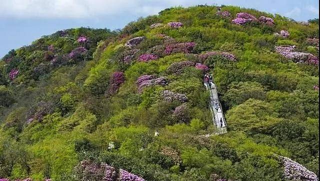 在凌空栈道,杜鹃花也是开得团团锦簇,在栈道上前行,心中颇有“人在画中游”之感。这时候最应该做的就是,放下手中用于自拍的手机和相机,好好深呼吸几口,感受到那扑鼻而来的清香与芬芳。