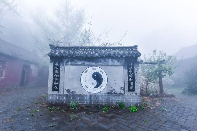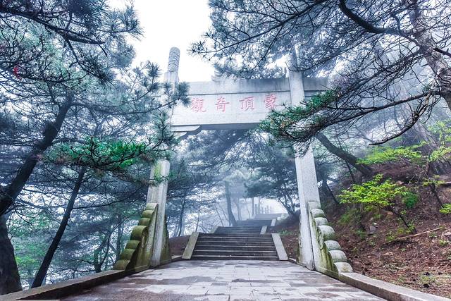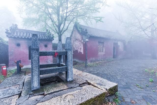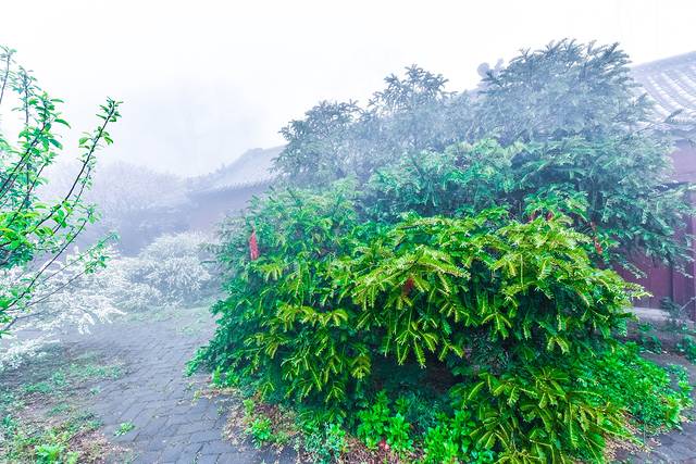 在这蒙山的道观附近,虽然下着雨,能见度非常低。拍照的话连对焦都很困难,但是烟雨蒙蒙的感觉进入道家养生的福地,是另外的一种美景。用佛系的理念去观赏祖国山水,都是琅嬛福地。难道不是吗?