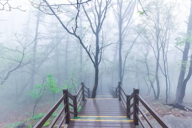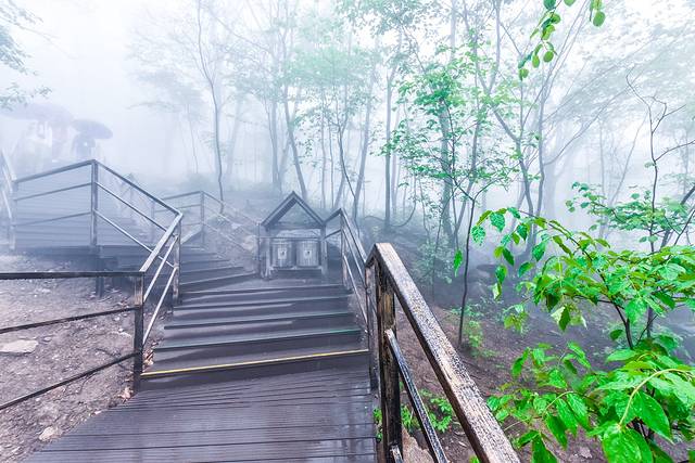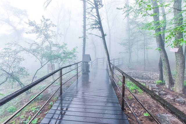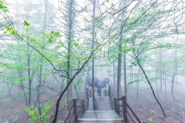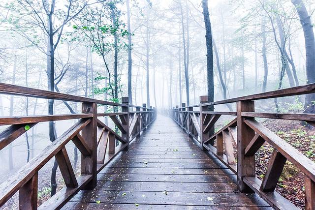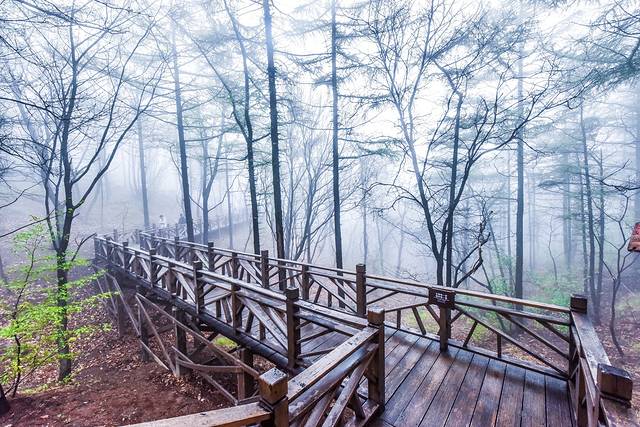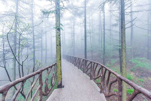 山东自古以来就是道家养生福地,而这里的环境也一样充满了养生福地的仙气。走在栈道上虽然看不到远方山川的景色,更不知晓这雾里到底有些什么壮美的景观。但是,朦胧的雾气给人了千差万别的想象,可以想象这里所有一切被想象出来的景象。