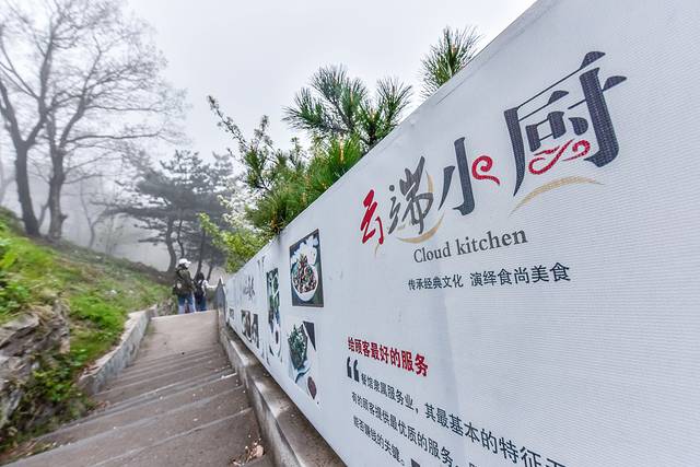 这里就是位于龟蒙顶的一座高海拔的特色餐厅,餐厅的名字也是非常有韵味,叫做云端小厨。