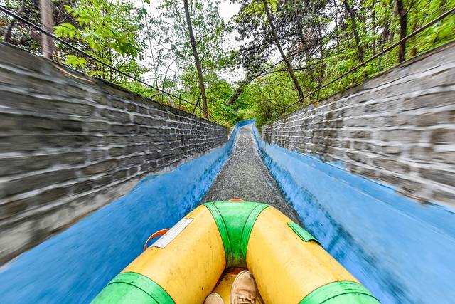 为了感受一下不常见的这森林漂流,山野君就亲自的体验了一下这样的感觉。本以为是一个非常普普通通的体验项目,没想到的是在体验的过程中与一般自然河流里的漂亮完全不一样,无论水流如何的急都不会让你湿身,无论漂流的过程中上下的坡度有多大,都不会让你颠倒或者有其他意想不到的湿身。在刺激而舒服的森林漂流的途中一边享受这样的新鲜感,一边欣赏穿越在森林里的美景,呼吸着新鲜的空气,这样的感觉真的是胜过做神仙了。