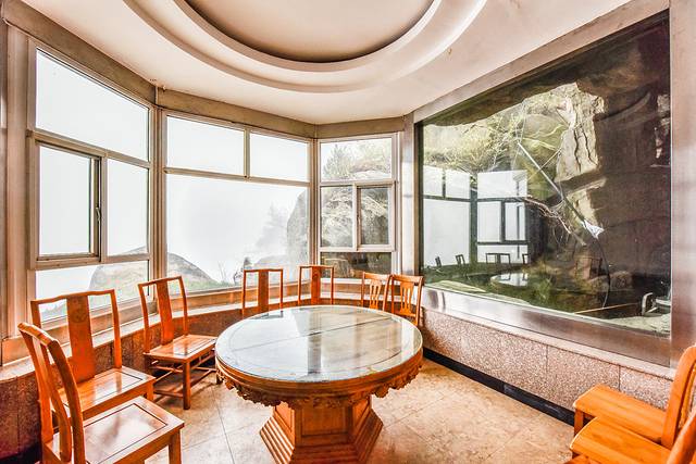 从外观上看整个餐厅就像是悬浮在整个沂蒙山顶与山腰之间,非常的有仙境。尤其是在这次我们到达沂蒙山顶的时候,整个云雾妖娆的氛围更为整个餐厅增添了不少的仙境的氛围。