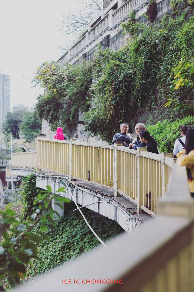 在青石板阶梯逐渐被马路、电梯替代,吊脚楼逐渐消失的时代,山城步道的回归确有献礼之意,虽然周围的房屋逐渐被移去,而加修后的步栈道给了爱登山、爱清净、爱摄影之友来到这里的契机。来往这里的多为本地人,偶尔也有摇旗的团队客闯入。随地势增高,依山而建的临空感让你不得不随时注意脚下,漫步在栈道上,饱收上下近远美景,将历史文化与现代景观,健身,观光串联在一起,又是另一幅渝中旧日景象。