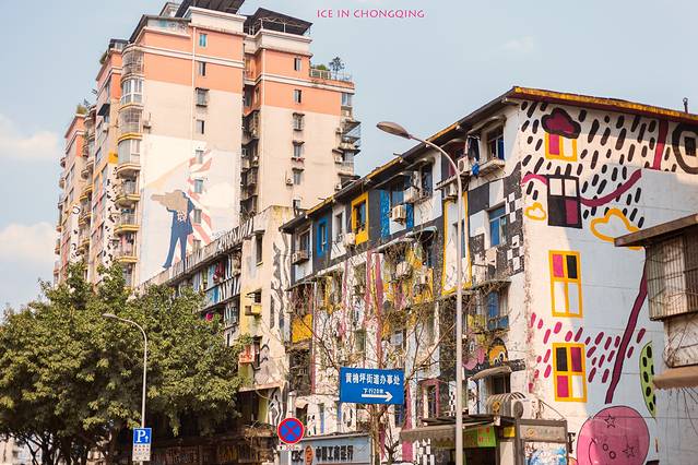 这样的街道风景赋予了复制式的居民建筑一种新的生命,也许是临近川美的缘故,加之周围的画室、工具售卖店的存在,让这一整片区域都艺术范十足,你不知道你身边擦身而过的是否是一个艺术家或者未来的艺术家。