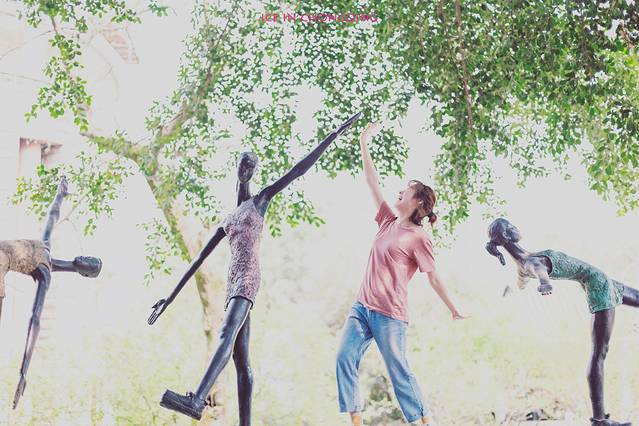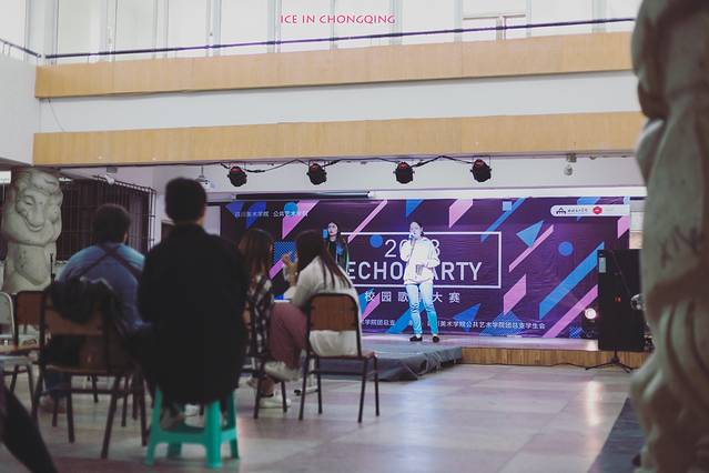 今天的川美,多处都被防护带隔起来,美术馆、图书馆、红楼正在进行外立面改造,校园里显得有些杂乱和冷清,传说中必去的坦克库并没有特意去寻找,而楼内传出的歌声又好像在告诉我们,这里的作息一切正常。走一圈下来,觉得学校像是一个微缩版的北京798,有很多有趣的雕塑,处处充满了艺术气息。校园不大,人少幽静,绿树成荫。