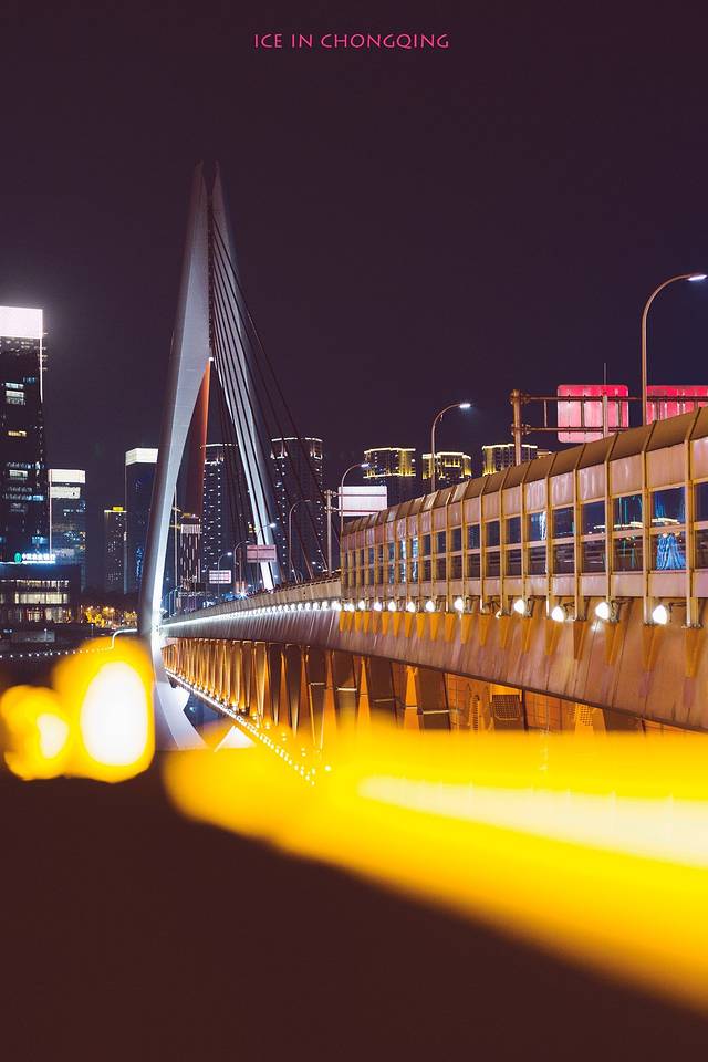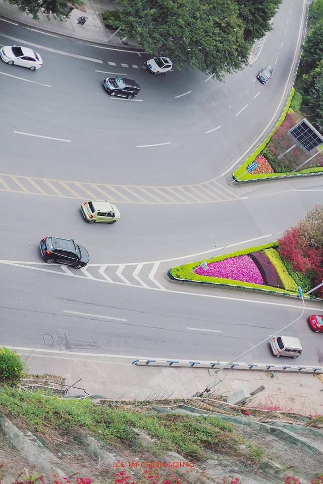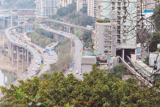 说是傲娇可能是因为天生优越的地理位置吧,这里是2、3号线的交汇处,抬头是渝澳大桥,平视是穿楼而过的李子坝,而低头是轻轨汽车交错而过的景象,无需额外的装饰,夜幕降临的时候,往围栏上一俯,此刻,你会觉得自己是人生赢家。