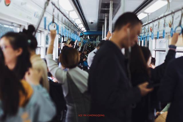 白天的牛角沱,是繁忙的中转站,如同北上恐怖的地铁早高峰,原来这里也一样存在,限流是必须的,以身体扭曲的状态坚持两站的状态让我们直呼救命。