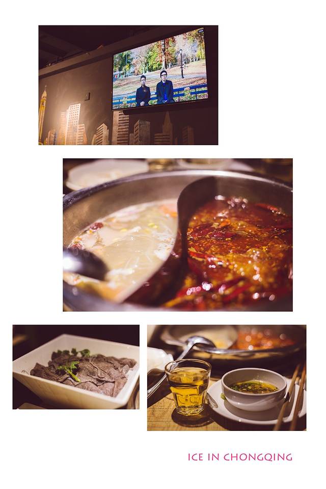 事实证明除了没有招牌的九格锅底,其他都近乎完美。除了食材新鲜以为,邻桌朋友的指点为整顿火锅提色不少。邻桌是重庆人加成都人的组合,从点菜到酱料到如何吃都点的特别到位让人胃口大开,在我们疑惑这家火锅店的时候,又信心十足的说着“重庆有300多家火锅店,能照常营业的口感基本都过关,不然早关门了”。知道我们是因公来这里后,互聊了行业里的种种又介绍了适合我们时间的游玩点,气氛就好像四个人本来就是约好了小聚谈天。