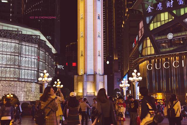 解放碑之于重庆,就如王府井之于北京,南京路之于上海,作为重庆的CBD,金融、零售、餐饮、娱乐业迅速在这里集合,让解放碑地块的时尚现代感迅速超越历史感,而代表红色过往的解放碑在密不透风的高楼中显得有些矮小,但却是对历史的一个交代。作为洪崖洞的豪华背景墙,这一带的密集度还将继续上升,在超越北上广的情况下,势在逼近香港甚至远亲纽约。