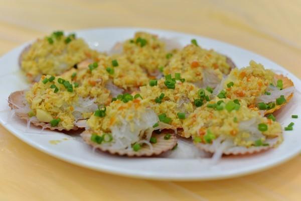蒜蓉粉丝蒸扇贝,肉质结实的一块块,跟那些冰冻的完全不同,吃在口里好幸福。