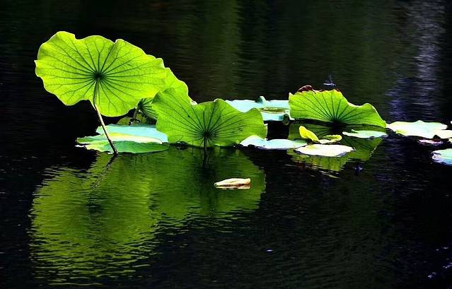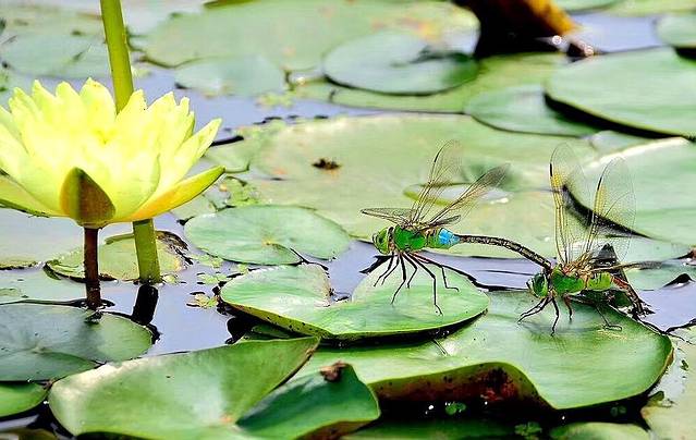 荷花池中的荷花和蜻蜓。