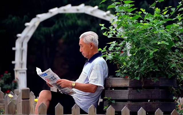 这位老爷爷在看报