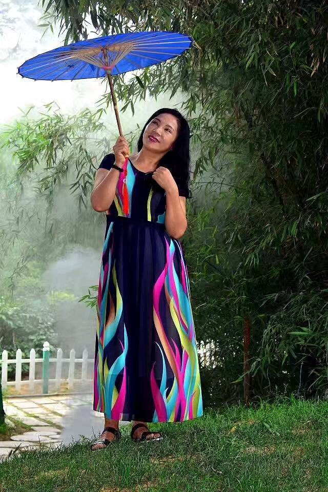 这是一位带着道具来拍照的女子