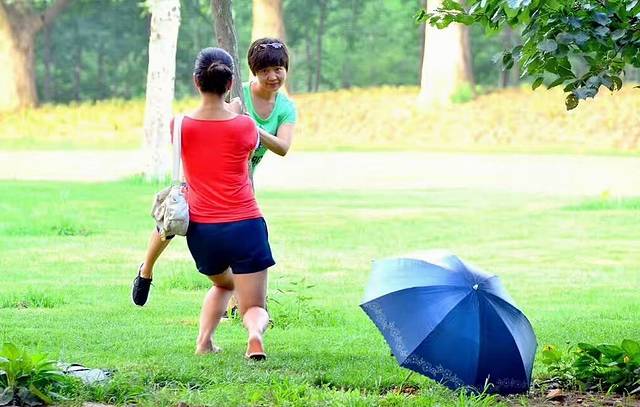 这两个女子在跳舞