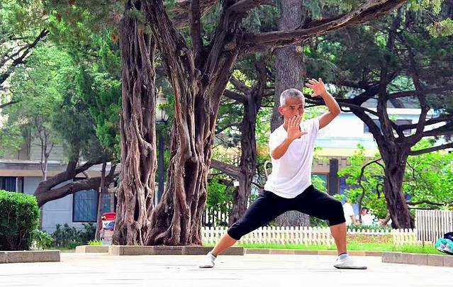 这个老人在练太极拳