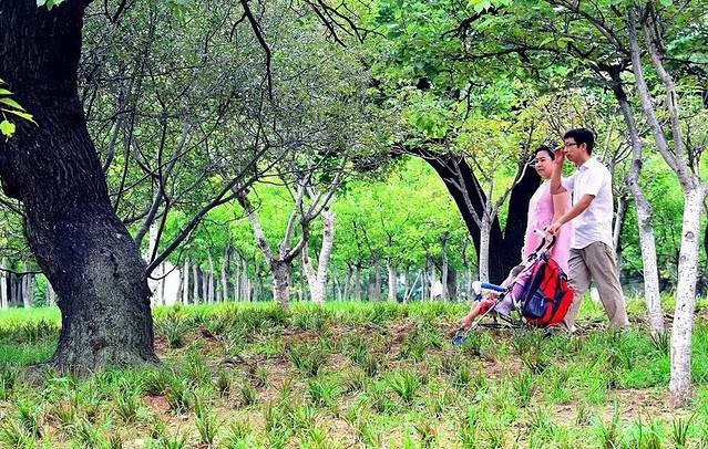 劳动公园也有带着孩子来散步的年轻人
