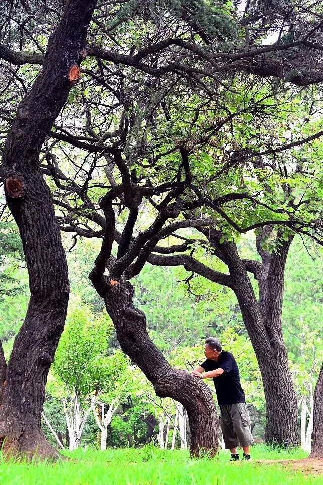 这课老树应该是这位老人晨练的辅助器械
