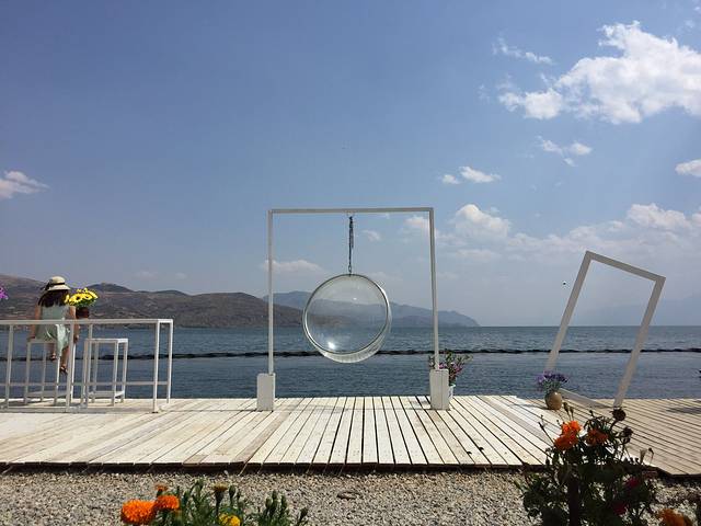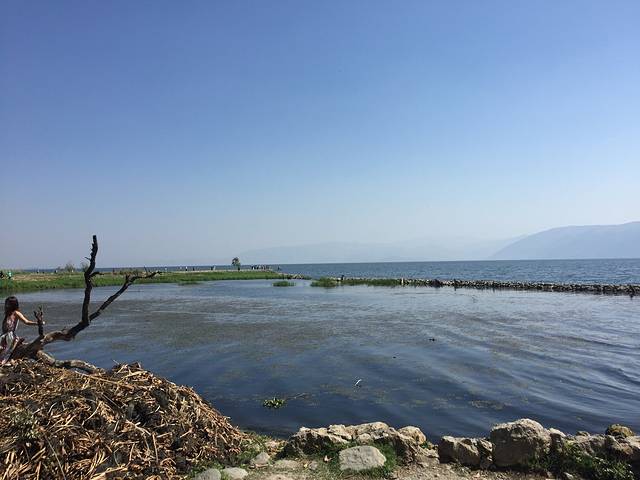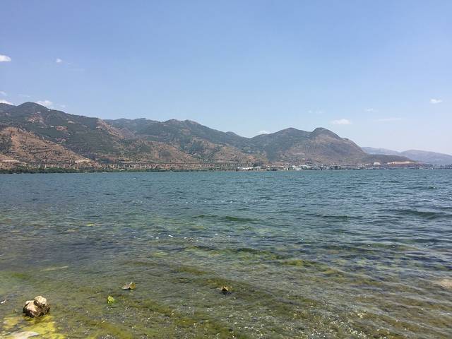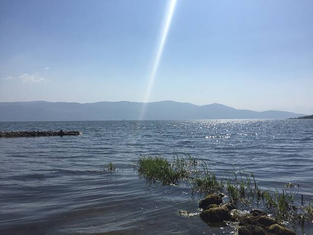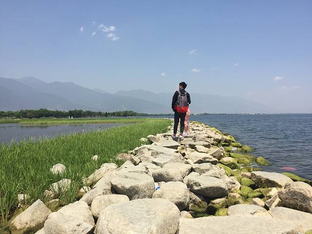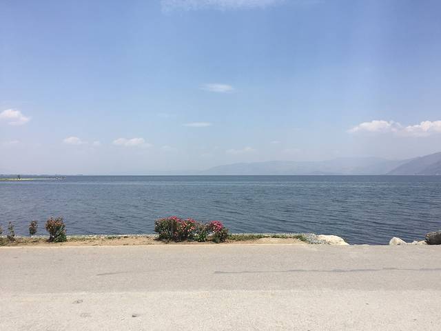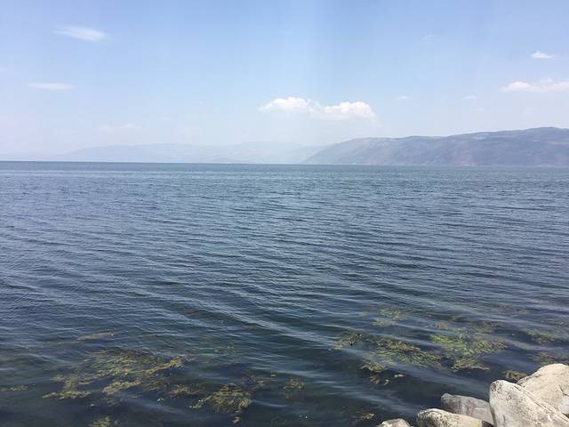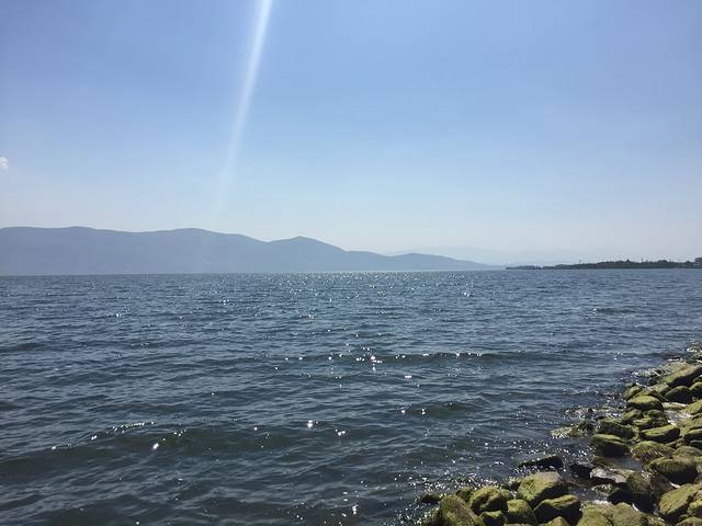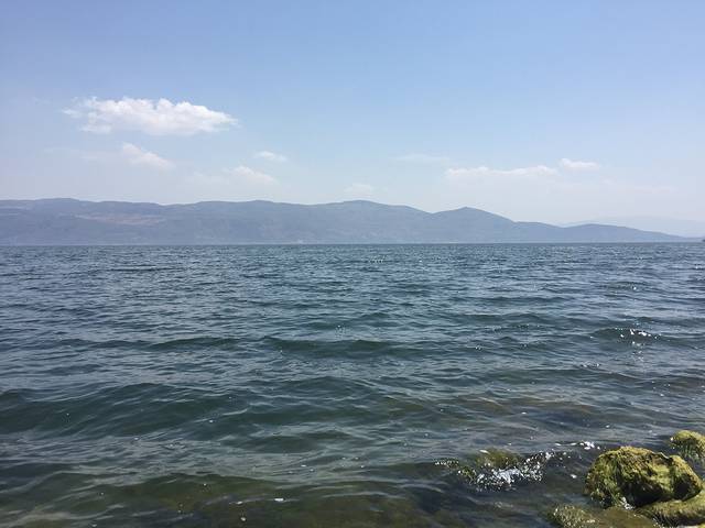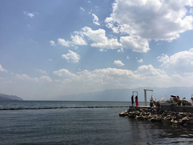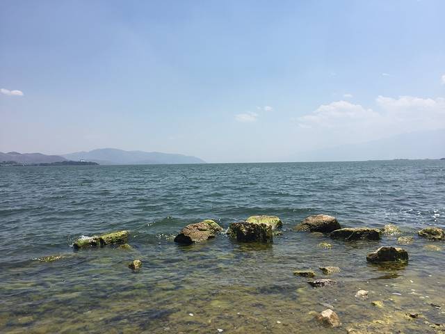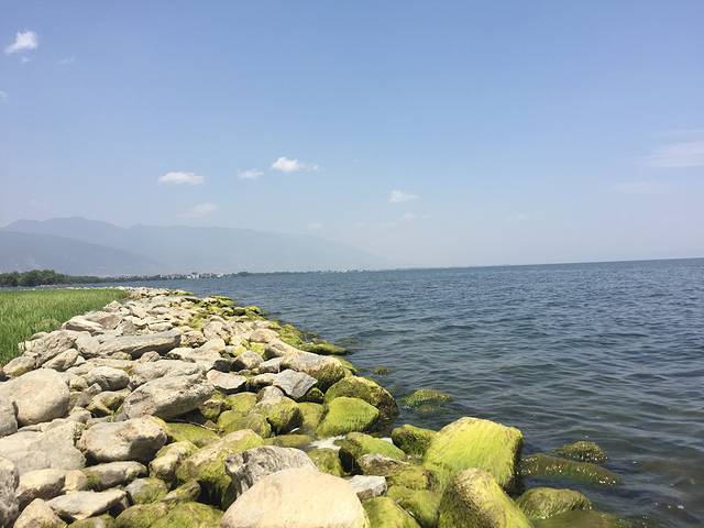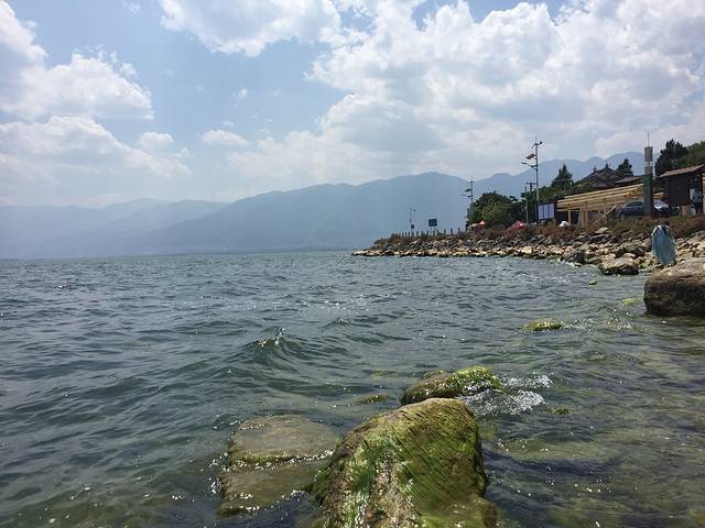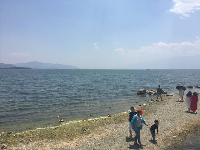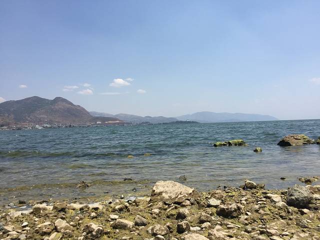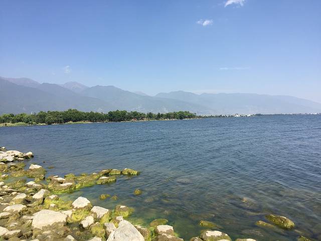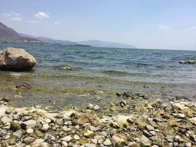 眼里的洱海,阳光照过来,水轻轻的、慢慢的流动着... ...真的很美!这里很干净!可以闲坐在石头上发呆、看眼前的美景!