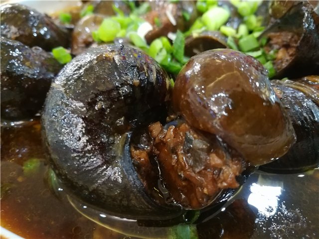 螺蛳的肉被取出,跟肉馅剁在一起,剁的很碎的那种,然后调个味道再塞回去,红烧一下。拿起一个螺丝,嗅一口,满嘴的肉呀,实在是太满足了,而且还有螺丝的香味,简直吃完一个又一个,根本停不下来。