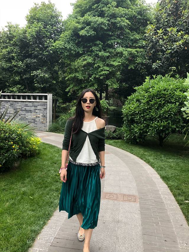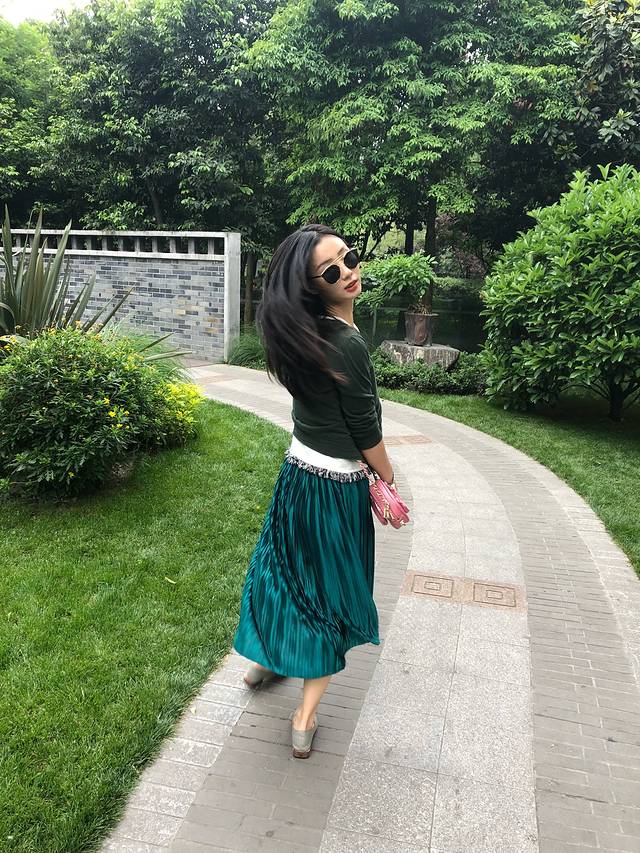 专门为了他配的同色外套和绿色裙子。