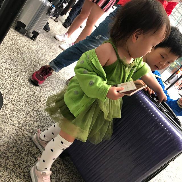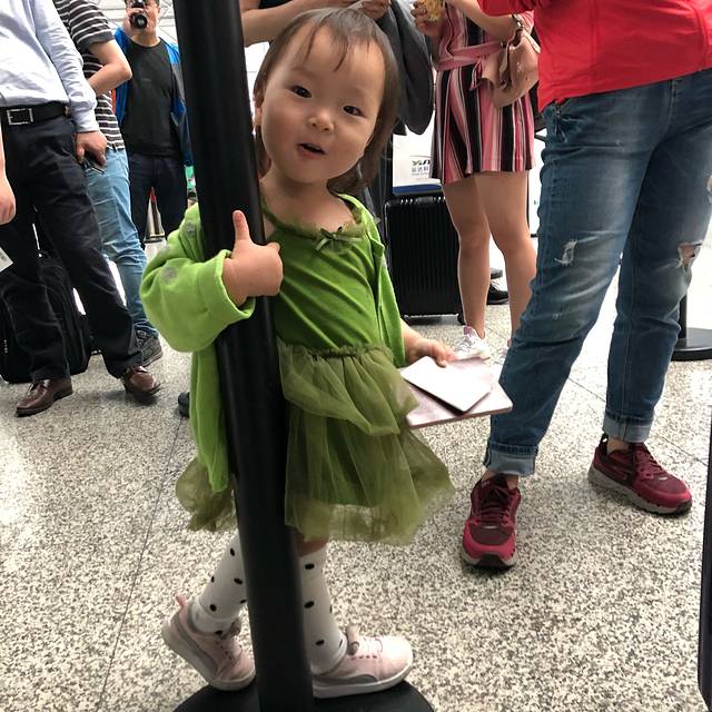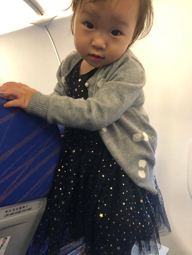 我在行李箱里面放了一瓶驱蚊喷雾和防晒喷雾 结果我们过安检的时候被打电话要开箱检查说发现两瓶大液体。弄完终于上飞机了。我们去值机太迟了,没有靠窗的位置,结果遇到一个好心的年轻人跟他说了一下,他愿意跟我们换了下靠窗的位子,让小朋友看看风景。