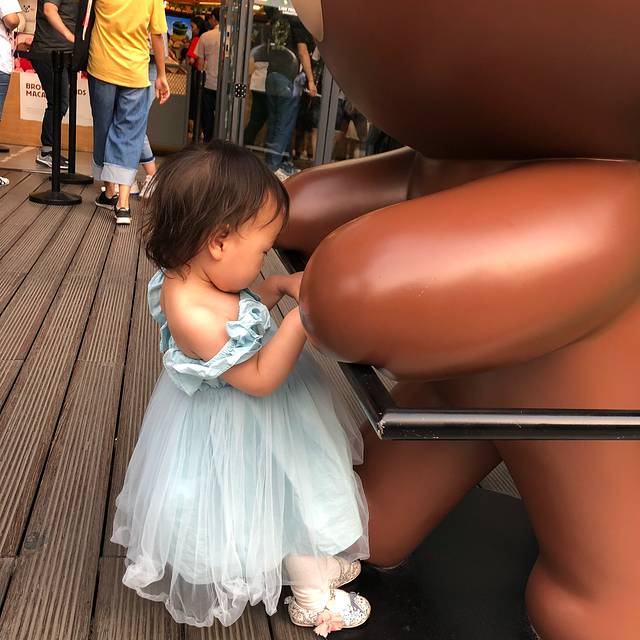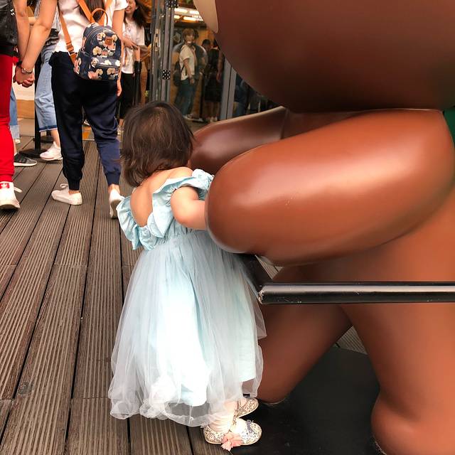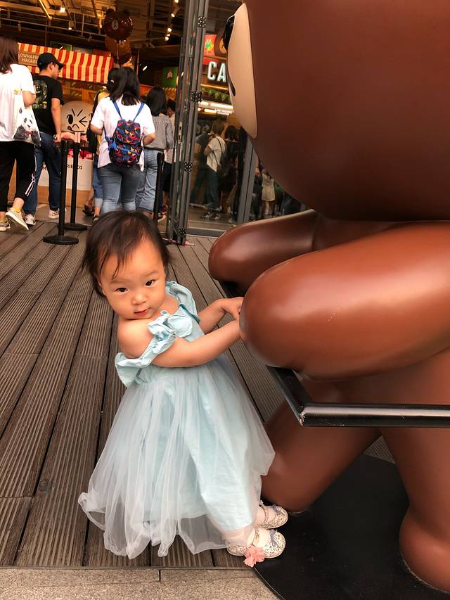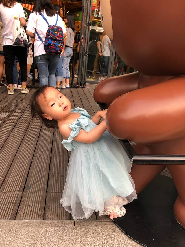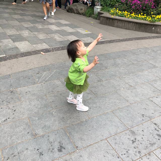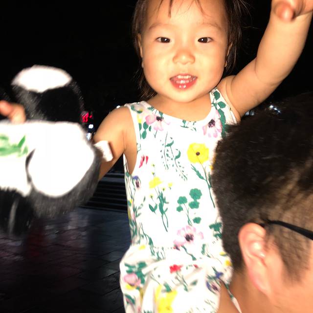 睡饱以后给奥特曼换了一条花🌹裙子,我俩都换上拖鞋,准备去逛夜市了。