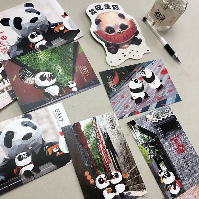 买了小熊猫。感觉成都这边的标志就是小熊猫和吃
