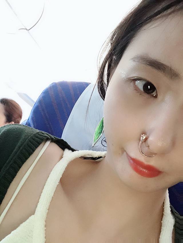 在飞机上太无聊了,拿戒指当鼻夹 好看不 中途遇到两次波流不稳