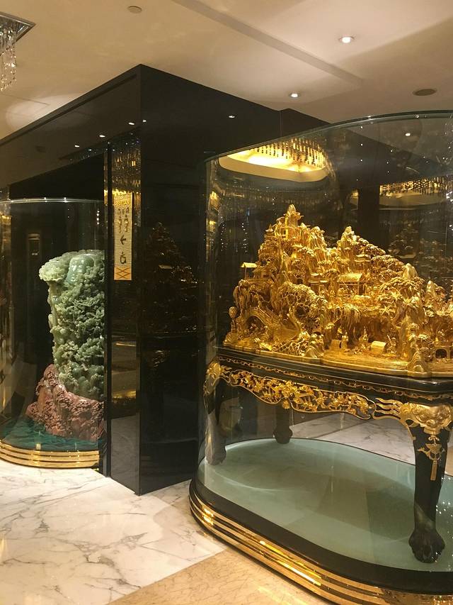 葡京娱乐城可以说是澳门的标志性建筑,分两个部分,老葡京建成于1970年,还是葡萄牙式风格;新葡京则建于2008年,就有些新潮了。。新葡京酒店和葡京酒店有条空中走道,所以无论是刮风下雨,都可以便利的穿梭于两家酒店。葡京酒店的主体建筑物就像一个鸟笼,就算现在看起来,也是一个挺独特的建筑物,更何况当年40年前,当时真的吸引了很多人前来。葡京酒店里面的装修虽然有点过时了,但是你从那些奢华的装饰品,例如那个巨大的水晶吊灯,你就可以想象当时亮瞎了多少人的眼镜了。而葡京酒店最吸引游客的,想必就是赌王何生的一大批展品,随便一件拿出来卖出去都能养活人的一生,每一间展品都非常精美精细,丝毫不输于博物馆里面的镇馆之宝,而且每间展品都有中英对照的介绍,真让你有种来到了博物馆的错觉啊!