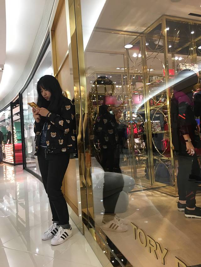 小姑娘陪着逛街一直机不离身