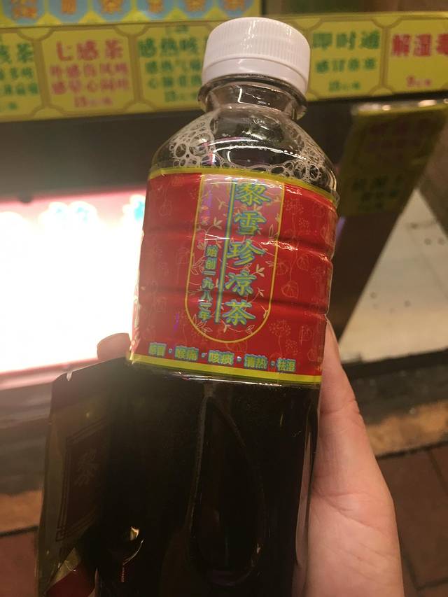 喉咙痛,回家时买了一瓶凉茶,这应该也算是广州的特色吧!