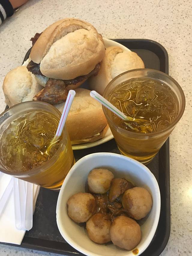 猪扒包,菜蜜,鱼蛋