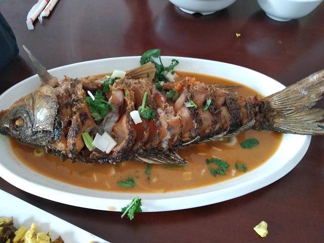 由于中午不敢吃饭,怕犯困,到目的地后已经是饥肠辘辘…客官…来条黄河大鲤鱼。鲤鱼在南方不受待见,到了北方可是桌上的美食。黄河大鲤鱼毫无疑问是北方人桌上的名菜。